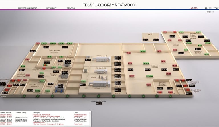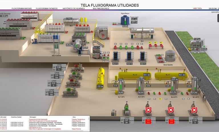 Desenvolvimento de software supervisório, para monitoramento, histórico e gráficos de funcionamento dos equipamentos, como compressores, bombas e ventiladores, afim de facilitar a operação e o gerenciamento de manutenção preventiva do sistema.